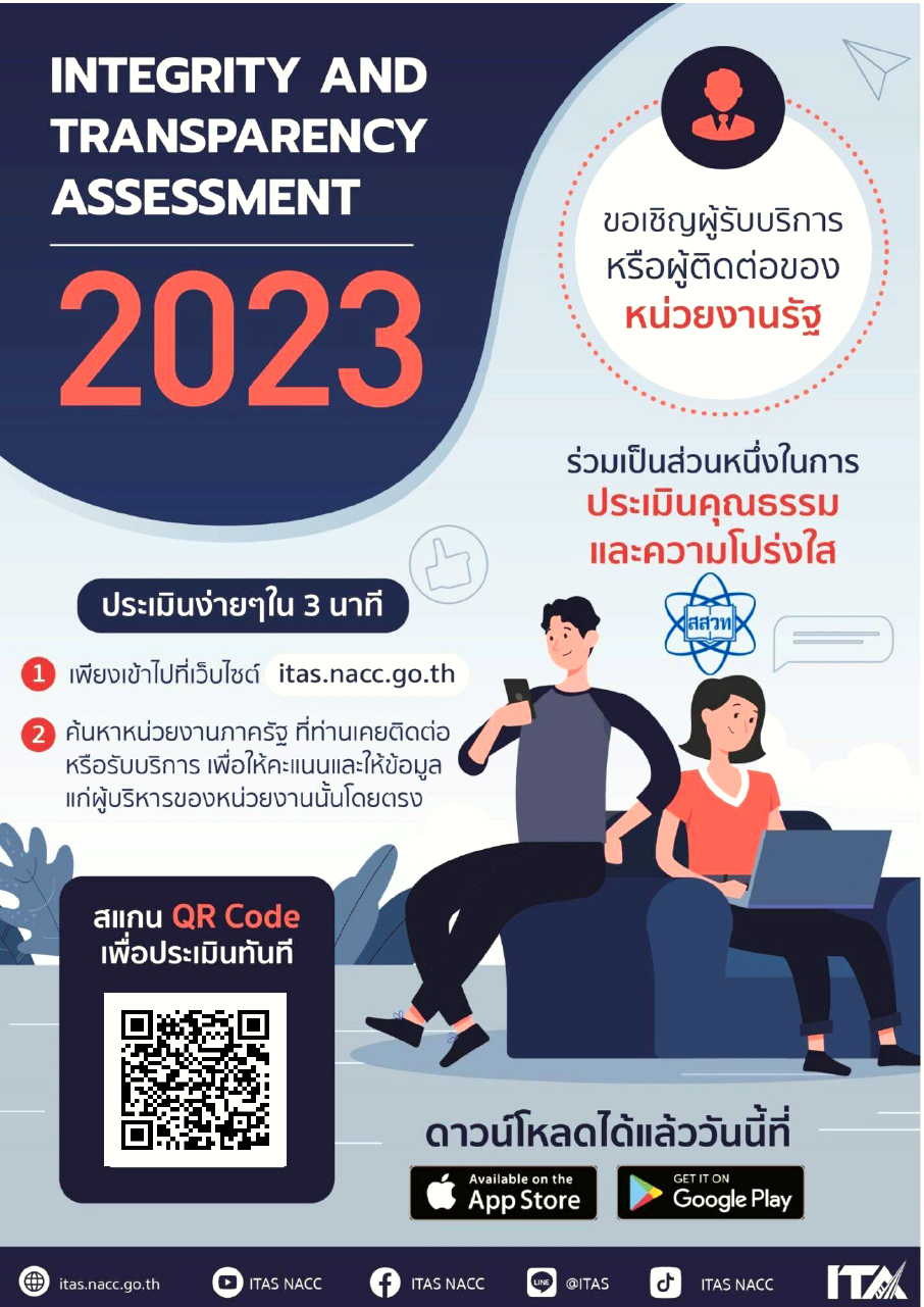ขอเชิญผู้รับบริการหรือผู้ติดต่อของหน่วยงานรัฐ ร่วมเป็นส่วนหนึ่งในการประเมินคุณธรรมและความโปร่งใส ประจำปี 2566