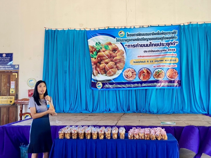 โครงการฝึกอบรมอาชีพเพื่อพัฒนารายได้ให้กับราษฎรตามหลักปรัชญาของเศรษฐกิจพอเพียง “การทำขนมไทยประยุกต์” ประจำปีงบประมาณ 2566 (หลักสูตรขนมครองแครงกรอบทรงเครื่อง)