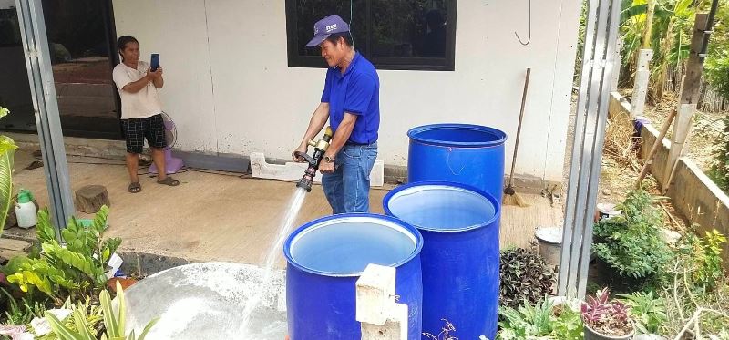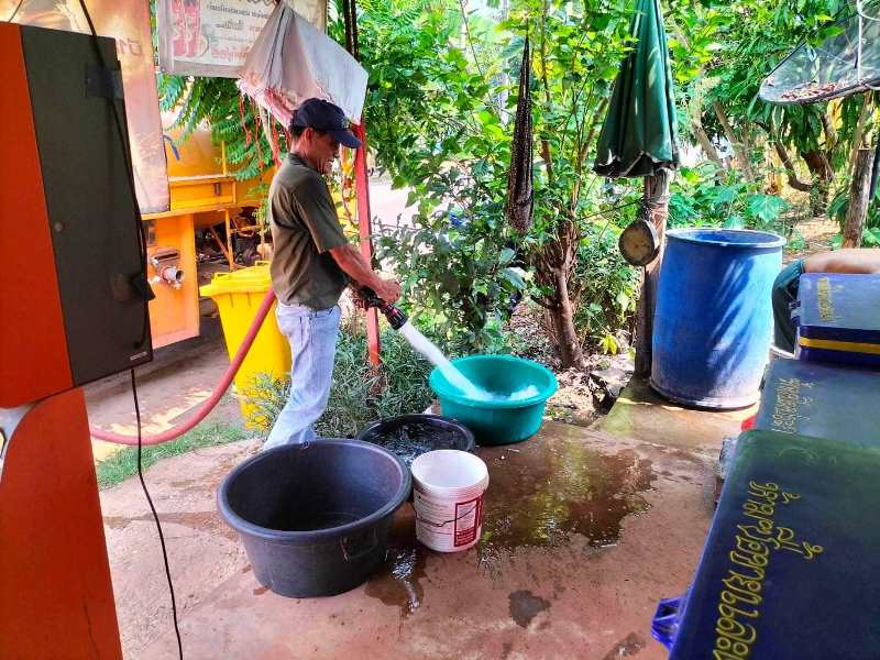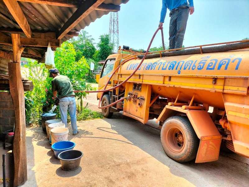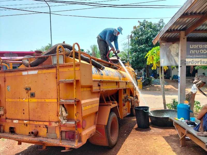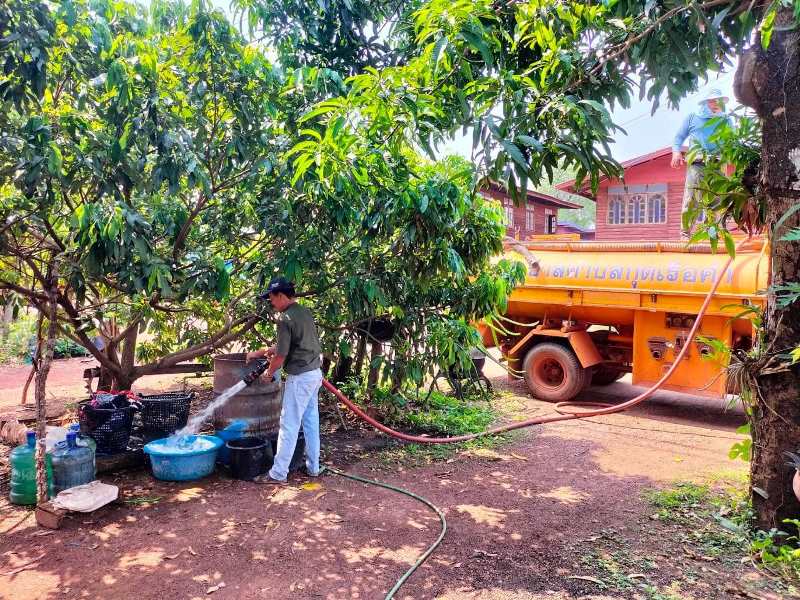 งานป้องกันฯ ลงพื้นที่แจกจ่ายน้ำให้ประชาชน เนื่องจากน้ำประปาไม่ไหลบางพื้นที่สาเหตุมาจากน้ำประปาบาดาลแห้ง ลดปัญหาขาดแคลนน้ำจากภัยแล้ง